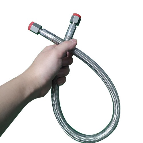 高溫鐵氟龍管總成,內層耐高溫鐵氟龍材質,外層不銹鋼編織網(wǎng)套,接頭可定制不銹鋼材質。